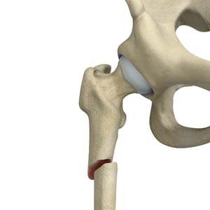 Stress fractures of the hip are a break in the upper part of the thigh bone (femur) that fits into the socket of the hip joint. It can occur in any part of the hip, however, it mostly occurs just below the ball of the ball-and-socket hip joint called the femoral neck.